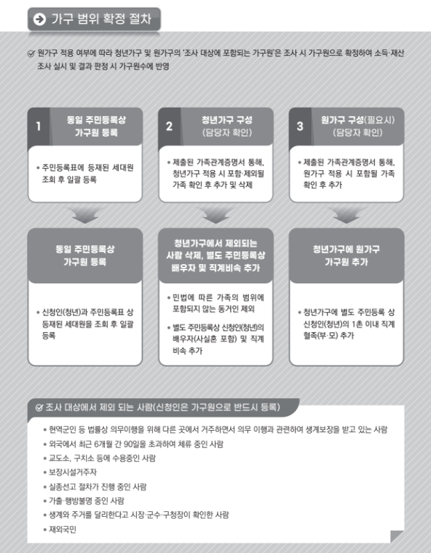 원가구는 청년 독립가구와 1촌 이내 직계혈족(부·모)을 포함합니다.