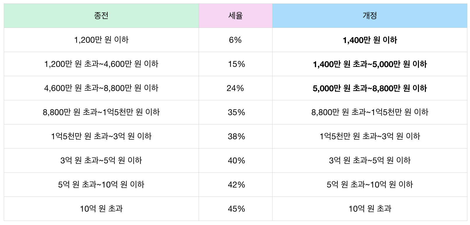 3. 소득세 과세표준 구간 조정(소득세법 제55조 제1항)
