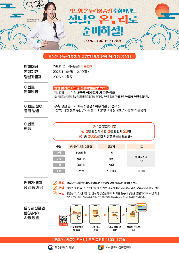 중소벤처기업부는 설 명절을 맞이하여 국민들의 물가부담을 실질적으로 경감하고자 특별한 소비 진작 프로그램의 일환으로, 1월 10일부터 다음 달 10일까지 한 달간 디지털 온누리상품권(이하 '디지털상품권') Big4 이벤트를 전면 시행한다고 공식 발표했습니다.